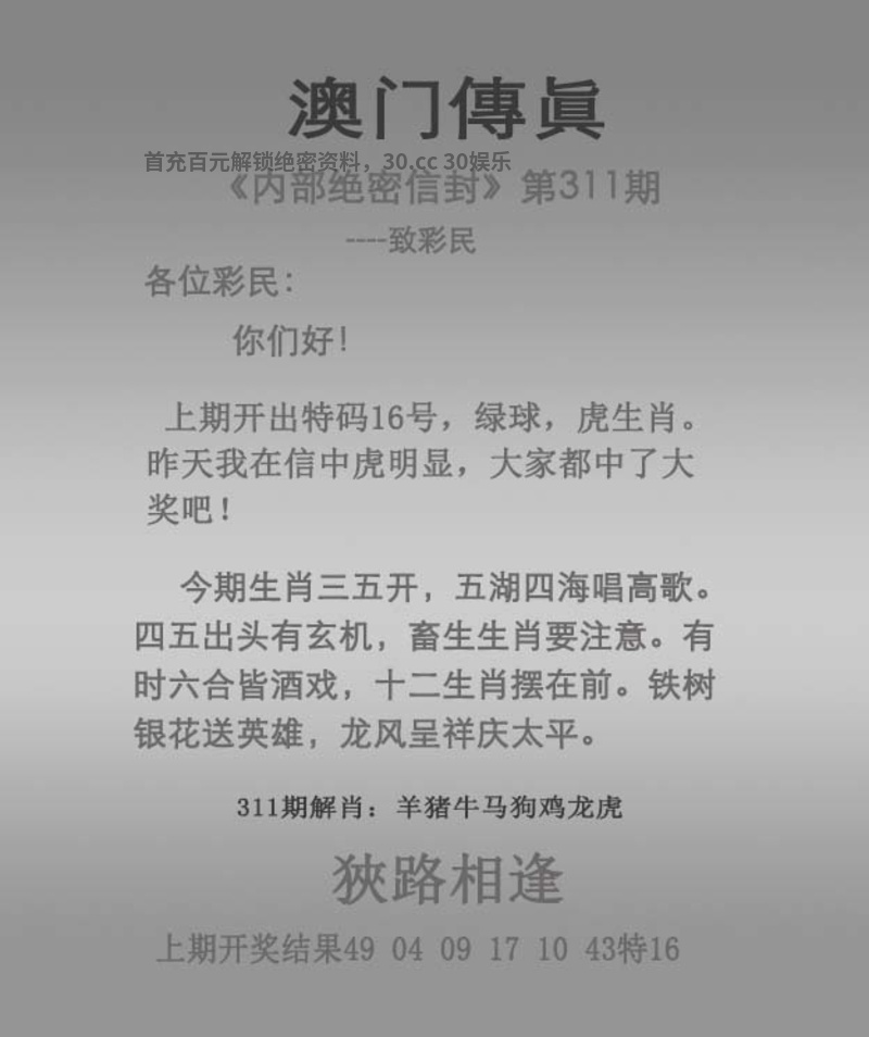 | 317期🥗四段中特🥗〖$-$-$-$段〗开: |